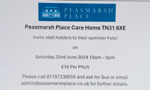 Peasmarsh Place would like to invite stallholders to their Summer Fete, to be held at Peasmarsh Place Care Home TN31 6XE on Saturday 22nd June 2024 from 10am to 5pm.