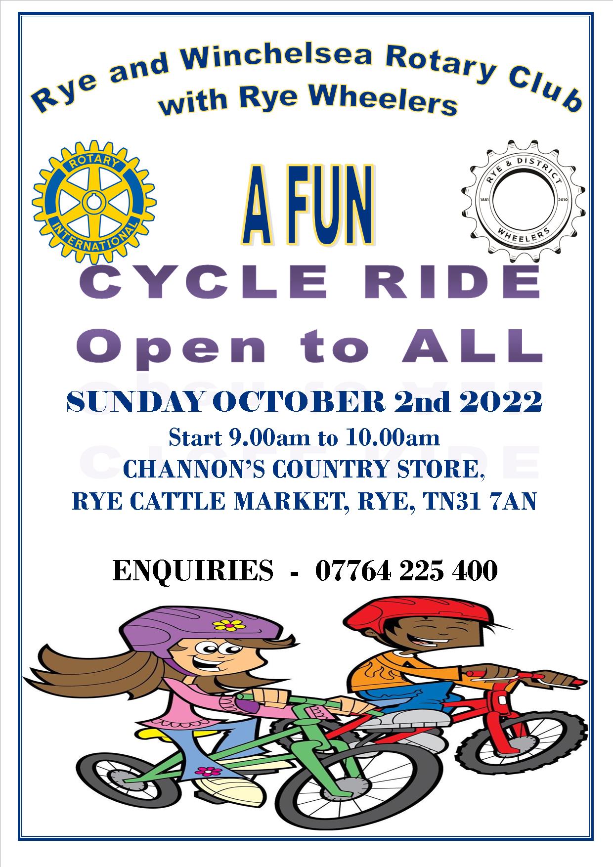 The Rye & Winchelsea Rotary Club, along with the Rye Wheelers are having a fun cycle ride on the 2nd October 2022.  A number of routes out and across the Marsh are available to suit all ages and skills.  Entry is by donation on the day and ALL are welcome.