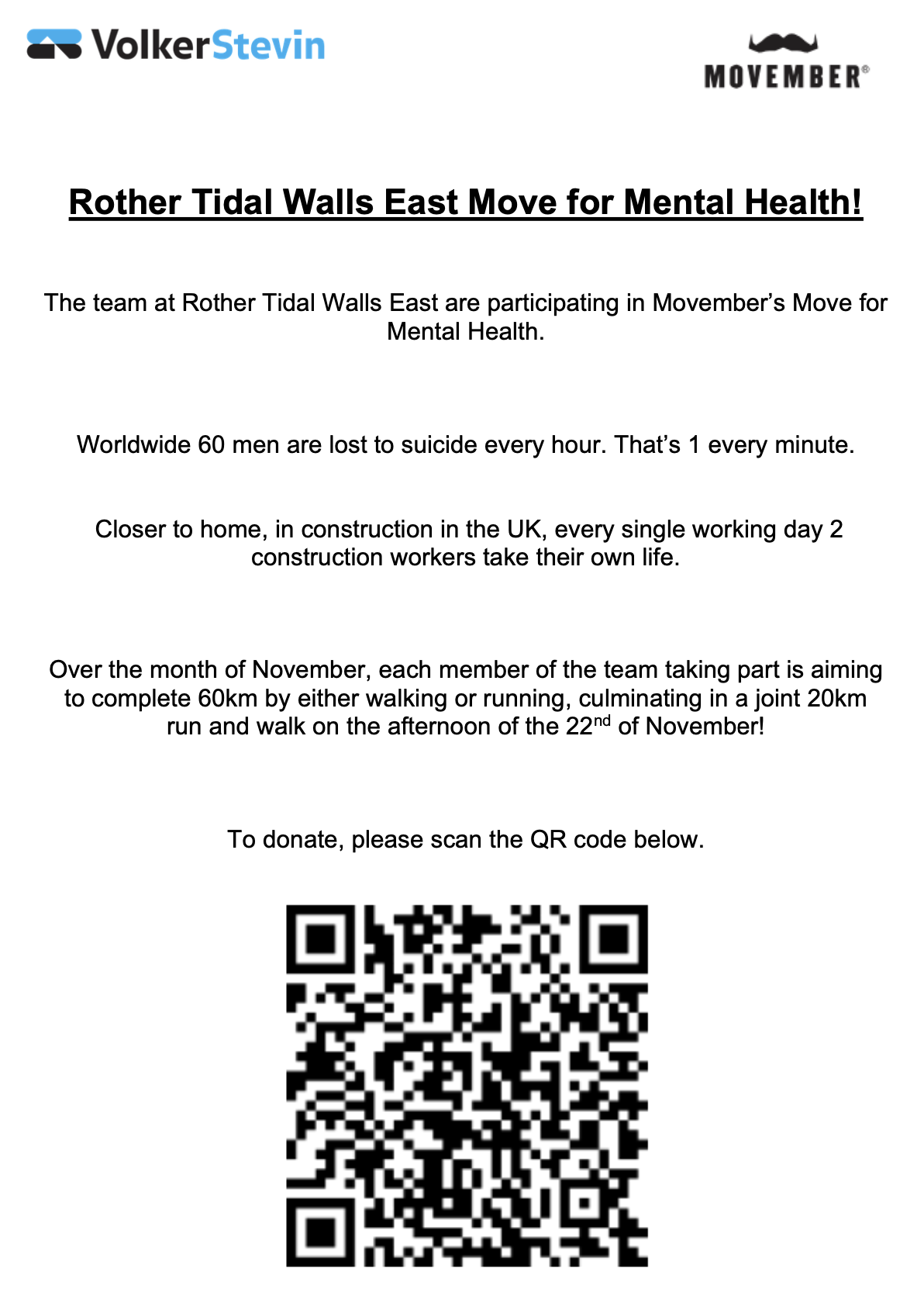 The team at Rother Tidal Walls East are participating in Movember’s Move for Mental Health.