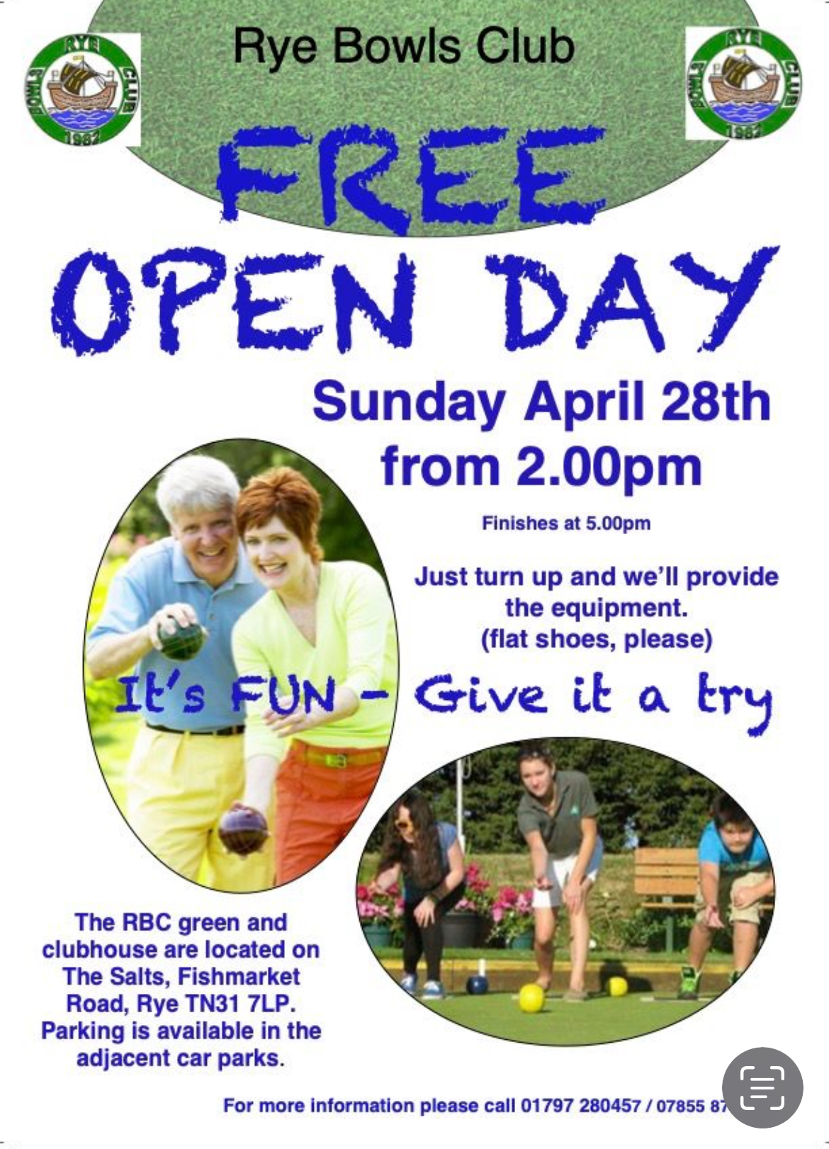 Come and see us at our clubhouse and green on Sunday April 28th from 2pm.