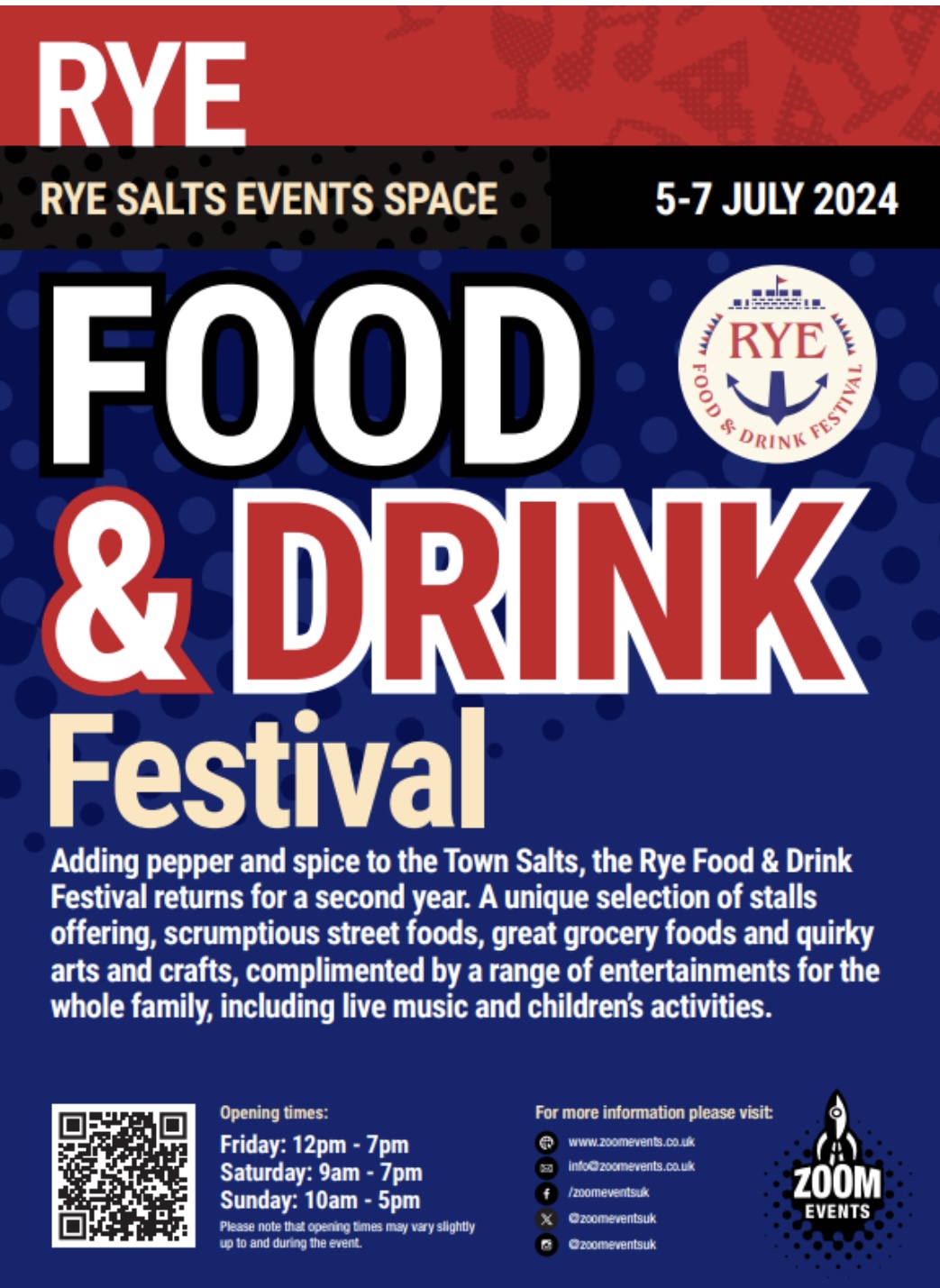 Rye Food & Drink Festival Festival Adding pepper and spice to the Town Salts, the Rye Food + Add to Google Calendar + iCal / Outlook export The event is finished. Date Jul 05 - 07 2024 Expired! Time All Day Category Food Share this event