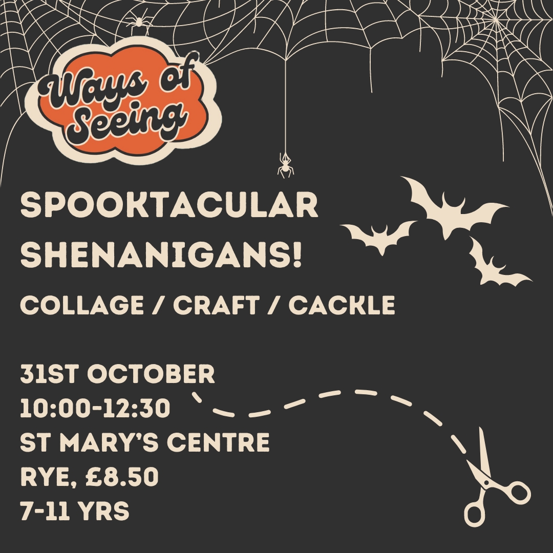 There will be lots to get stuck into in this Halloween workshop. We’ll be having a bash at the Surrealist game of ‘Exquisite Corpse’ (in giant form!), getting giggly with googly eyes, creating spell collages, writing anonymous ransom notes & much more! All materials will be provided. However, if your child/children would like to bring any of their own collected images to incorporate into their creations, then that’s fine, too!