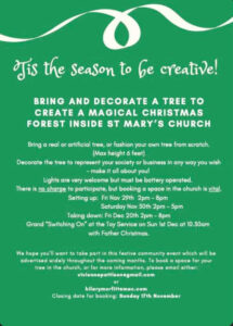 BRING AND DECORATE A TREE TO CREATE A MAGICAL CHRISTMAS FOREST INSIDE ST MARY’S CHURCH
