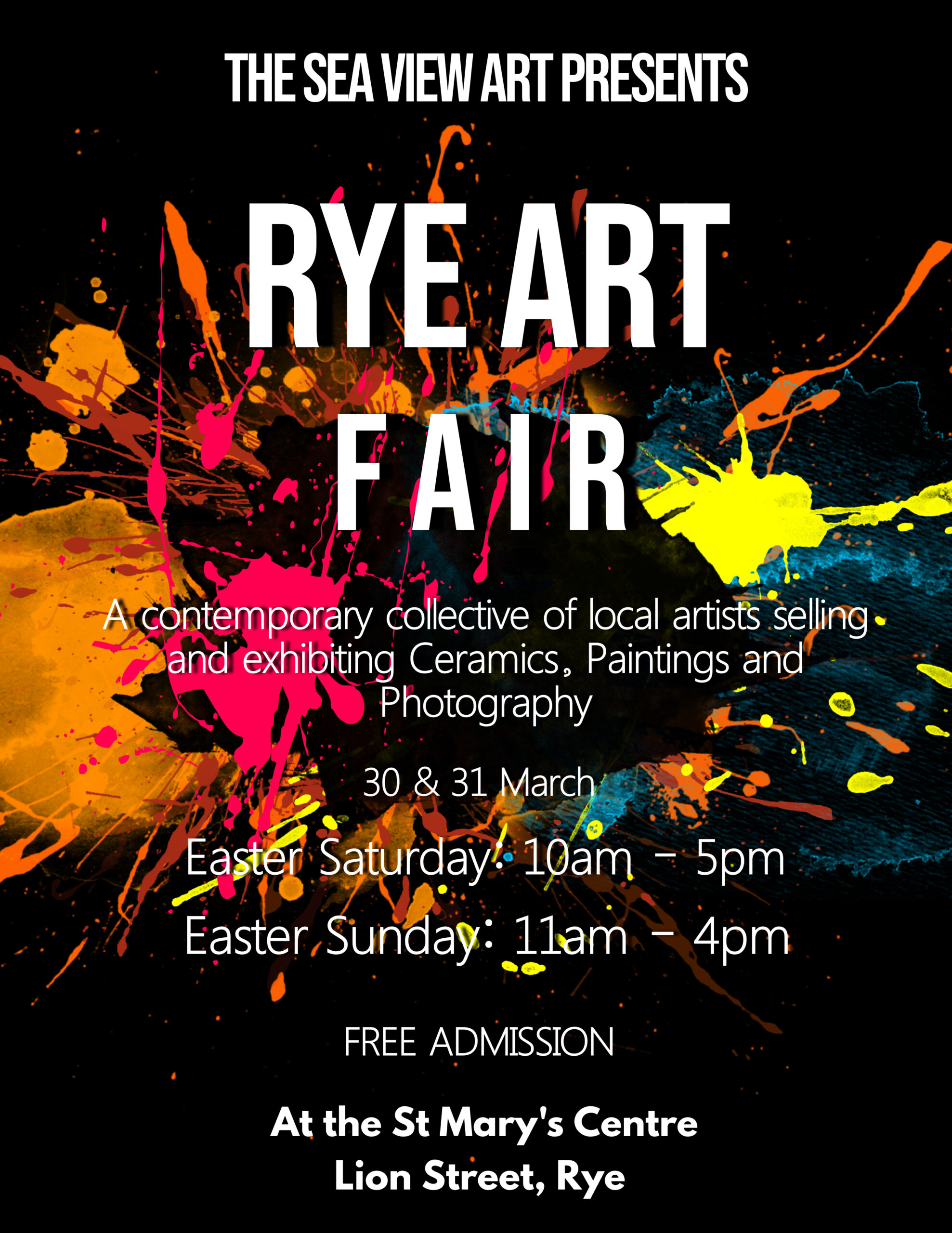 The Sea View Art Presents Rye Art Fair Rye Art Fair Image Credits: Peter East-Hall . + Add to Google Calendar + iCal / Outlook export The event is finished. Date Mar 30 - 31 2024 Expired! Time 30th till5pm, 31st till 4pm All Day Location St Mary's Centre St Mary's Centre, Lion Street, Rye Category Culture Share this event