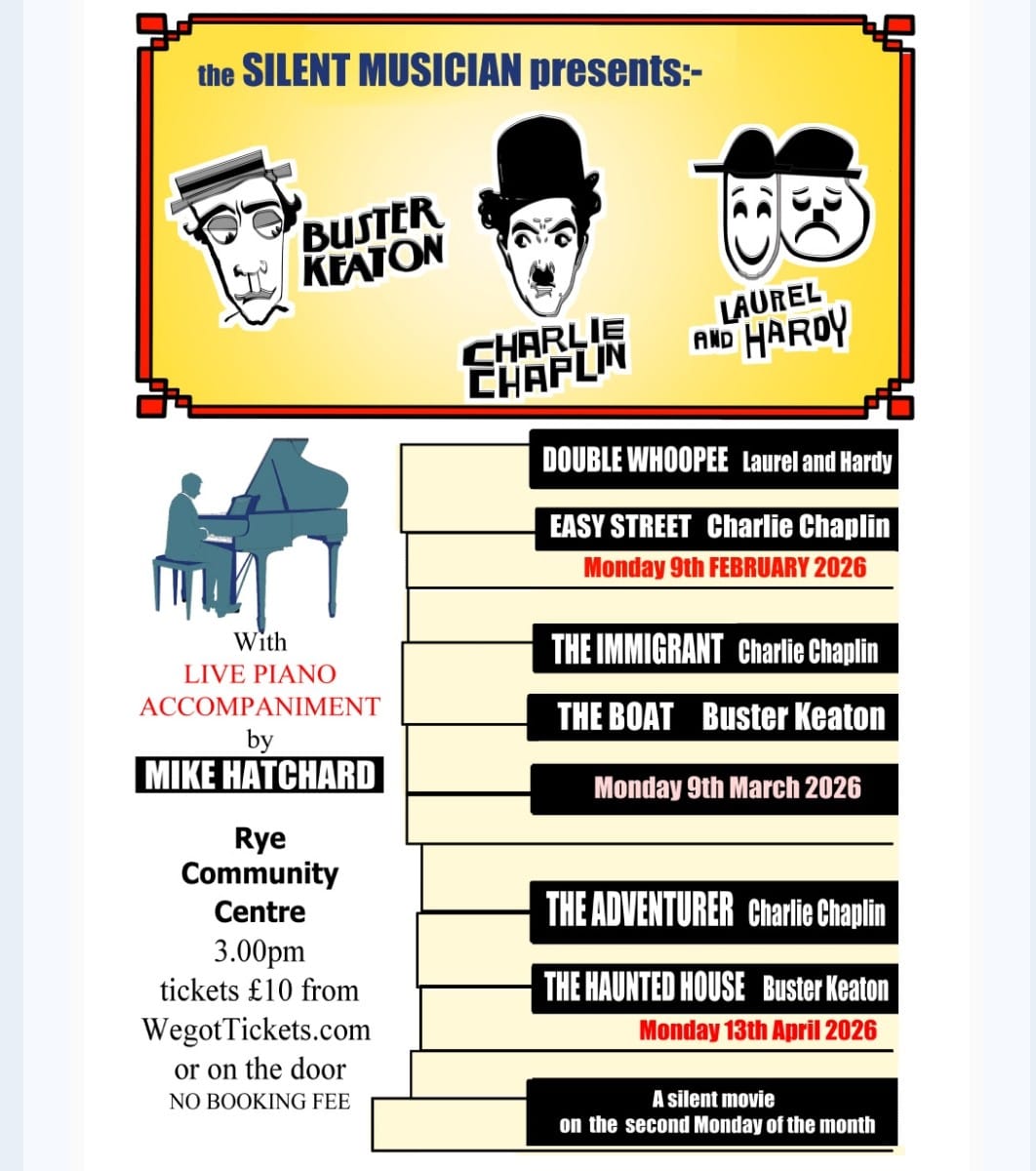 The Silent Musician Presents: + Add to Google Calendar + iCal / Outlook export The event is finished. Date Mar 09 2026 Expired! Time 3:00 pm - 5:00 pm Cost £10.00 More Info Read More Location Rye Community Centre Conduit Hill, Rye, TN31 7LE Category Entertainment Share this event