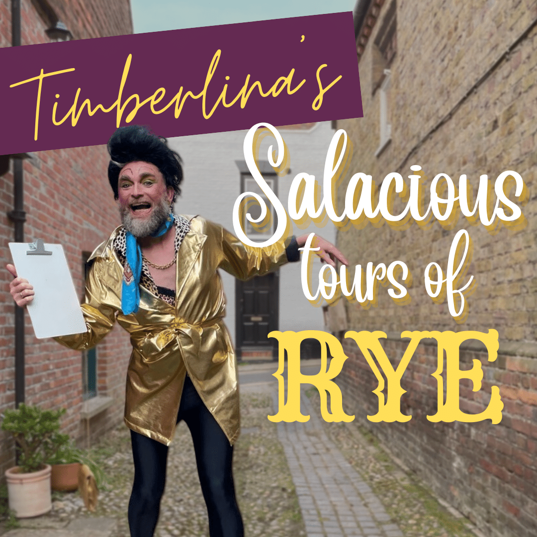 Get an insider’s intimate guide to Rye with a walking tour of historic insight and salacious intrigue with your hirsute hostess-cum-tour guide Timberlina. Timberlina has hosted various street and gallery tours for institutions including The Soane Museum, The Tate, National Portrait Gallery in London as well as here in Rye, for The Rye Arts Festival.