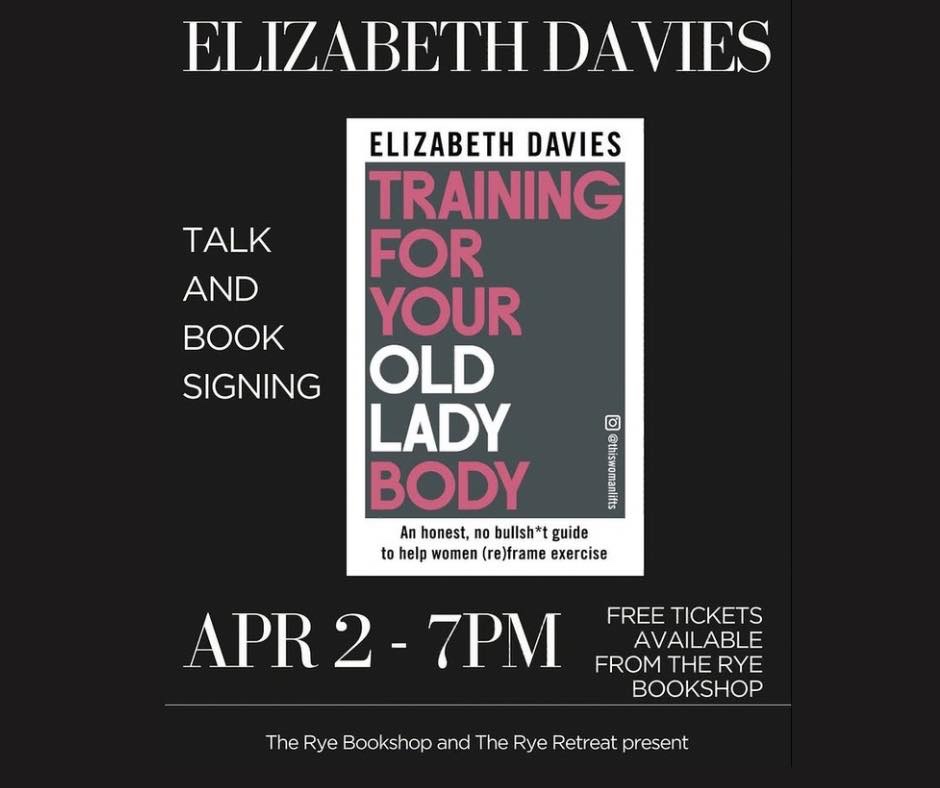 She will be drawing on her new book Training For Your Old Lady Body, which will be available to purchase on the night.