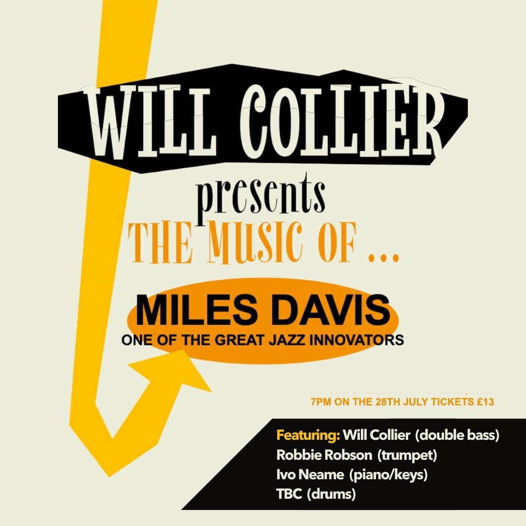 From the early years of bebop, a young Miles played with the great musicians of the period Charlie Parker and Dizzy Gillespie. Then through the 50s and 60s Miles was at the cutting edge of cool jazz, hard bop and modal jazz. Later his music evolved into fusions of jazz/rockjazz/funk and even jazz hip hop – Will Collier’s quartet will pay homage to all of these eras.