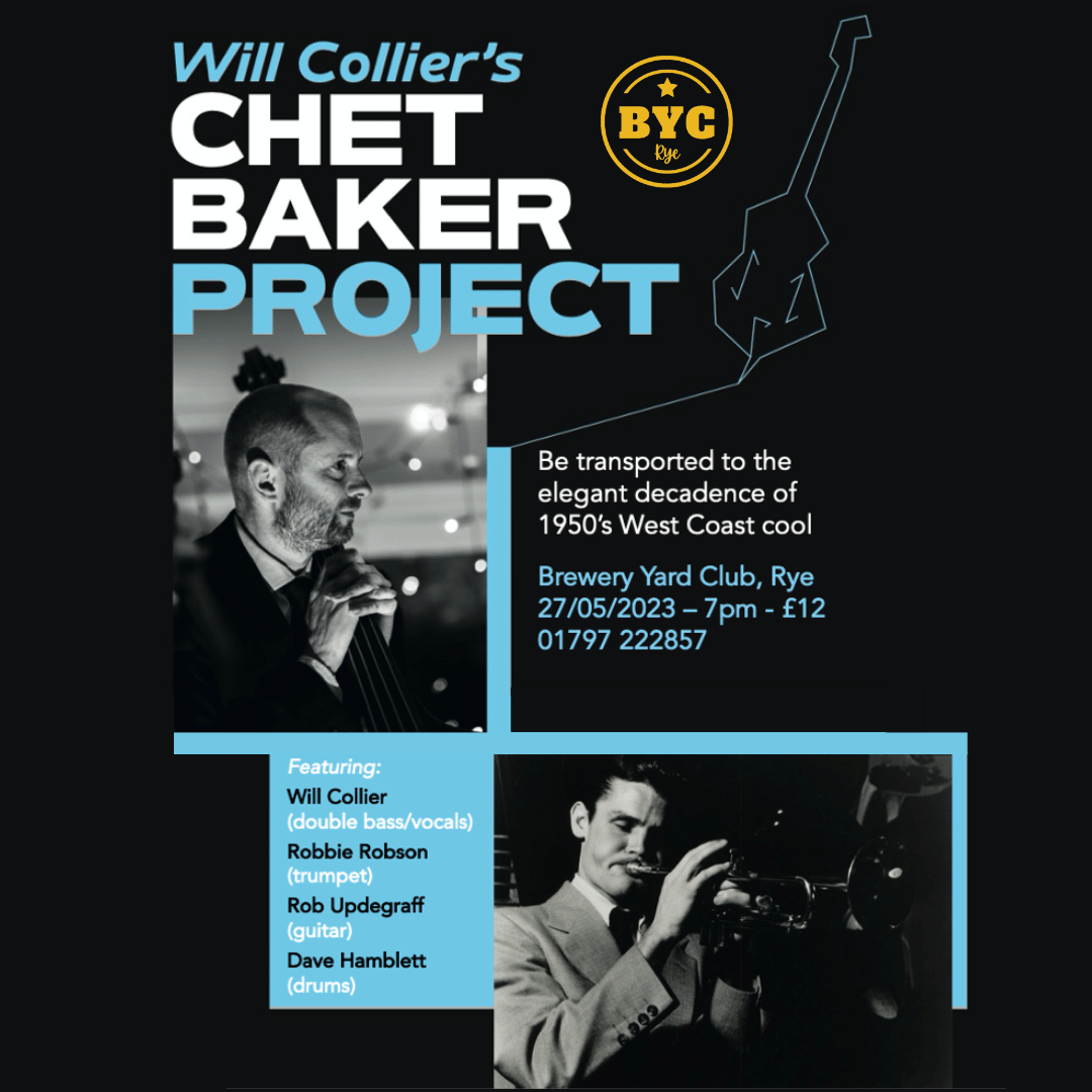 Will Collier’s Chet Baker Project transports you to the elegant decadence of 1950’s West Coast cool. After the second world war, following Miles Davis and Gil Evans’ lead, Chet Baker along with long term collaborator Gerry Mulligan decided to leave the technical improvisations of bebop behind to create a laid-back melodic style of jazz emphasising composition and arrangement. Will Collier’s quartet pay homage to Chet’s legacy with music ranging from his early recordings with Charlie Parker to the piano-less quartets to the seminal album Chet Baker Sings.