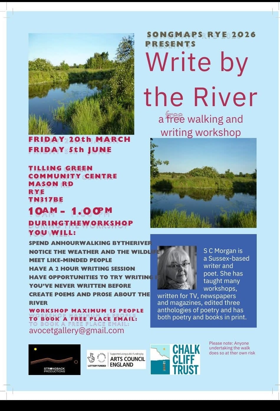 Write by the River + Add to Google Calendar + iCal / Outlook export 00 days 00 hours 00 minutes 00 seconds Date Mar 20 2026 Time 10:00 am - 1:00 pm Location Tilling Green Community Centre Mason Road, Rye TN31 7BE Category Culture Entertainment Literary Living Share this event