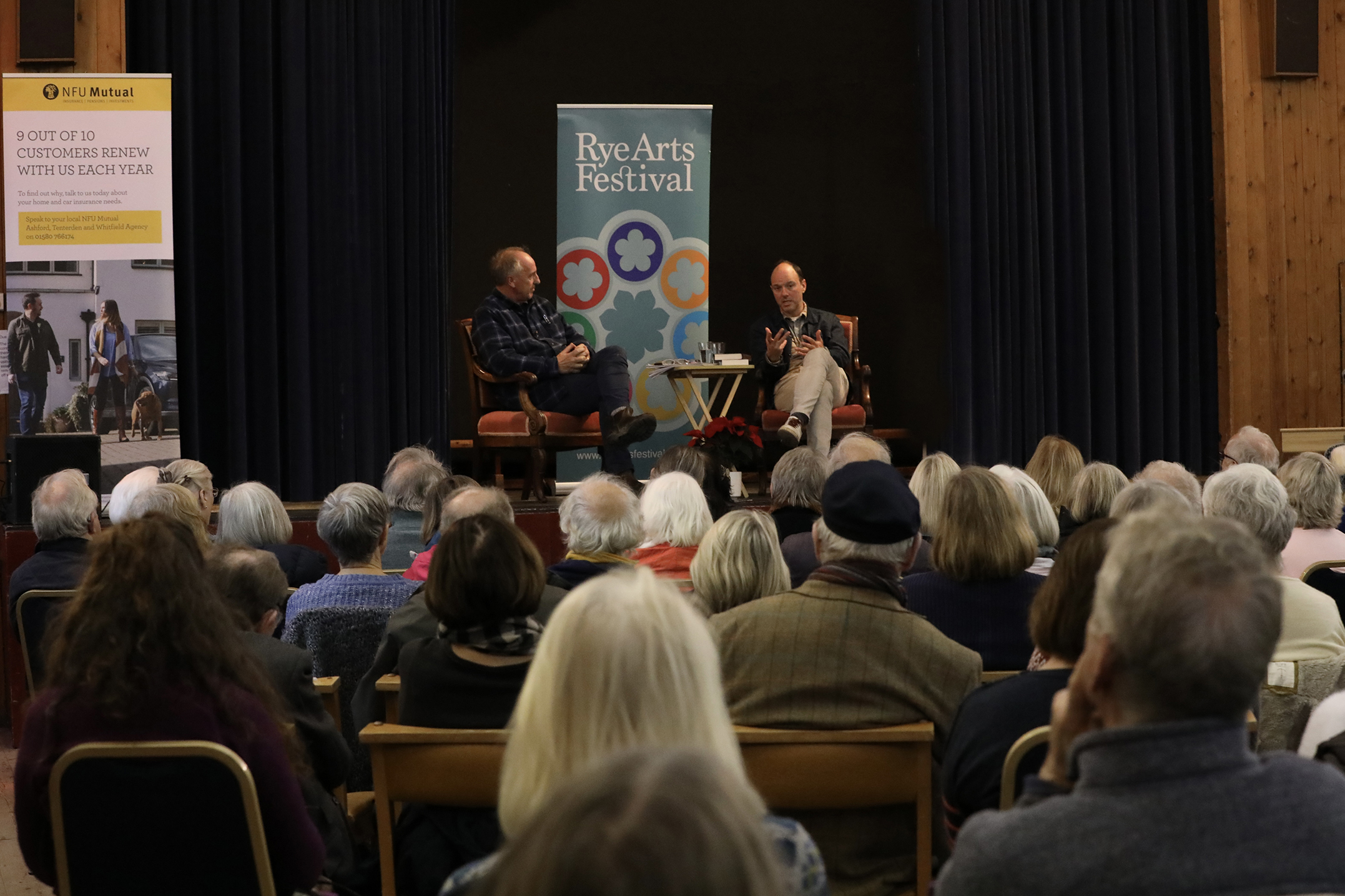 On Saturday November 26 Adam Nicolson was in conversation with Alex Preston as part of the Rye Arts Festival. It was an entertaining event which delighted the audience at the Rye Community Centre. Adam writes books on the landscape and history. He is the son of the author Nigel Nicolson and grandson of Harold Nicolson and Vita Sackville-West. Adam is also an award-winning journalist and wrote weekly columns for many years for the Daily and Sunday Telegraph.