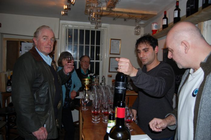 The wine bar was packed with the entrants as well as eager spectators as samples of the 15 entries (11 ‘nouveau’ from this years crop and four vintage) were poured out by Rye News director, and organiser of the event, Dennis Leeds-George. The judges were Margaret O’Neill, a Ryer of long standing who was a judge last year, John Minter, representing Rye News and Graham Foster and Danny Delenio, both from Olde Worlde Wines.