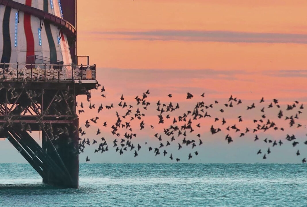 Murmurations are most commonly seen in the early evening, just before the birds roost for the night. The patterns created by the birds are ever-changing and can include undulating waves and twisting helixes. They are becoming more common locally but many people head to Brighton to watch in admiration at the show they put on free each evening. Just before dusk, small groups of starlings from the same area come together above a communal roosting site. The group grows ever larger, moving in unison in an aerial dance that casts gorgeous shapes against the waning daylight.