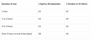 The proposed parking charges for Broomhill Sands Car Park, between 8am to 6pm are as follows: