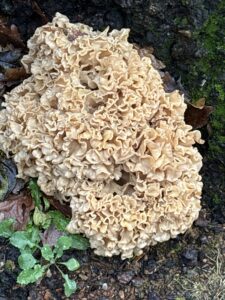We gathered at first round the stump of the old felled cedar where the uncommon cauliflower fungus (Sparassis crispa) has continued to thrive annually even after the controversial felling of the tree itself.