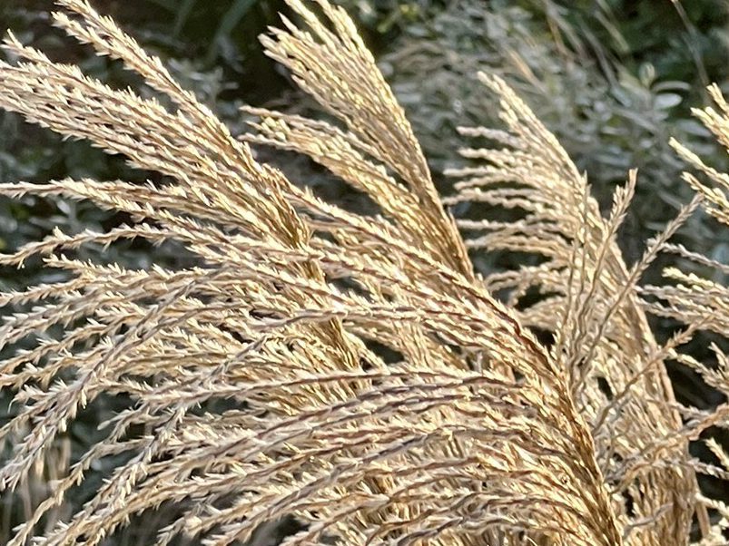 Outside in the garden, the miscanthus still looks beautiful in the evening sunlight. But working outside means cold winds, and damp, damp air. It’s putting pay to my efforts to get the final, late-bargain bulbs into the ground. Soon I will give up completely and plant them into pots. The allotment planting of garlic and onion has also eluded us. I shall be trying the trick of planting in single-compartment seed trays instead. To save on heating, our downstairs bathroom is rather chilly right now. Perfect for getting my sweet peas and various onions and garlic sets to start rooting. Open garages are also great for our pots of bulbs, at least for the next few weeks. The wind and wet has toppled many of our remaining grasses and perennials in the garden. We have lots of bumble bees in warm weather, so I am loathe to clear away the broken grass stems and piles of leaves, just in case they are nest-sites for hibernating bees.