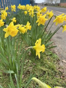 What a difference a few weeks make. Dawn chorus has erupted in song, and our blue tits have become territorial and angry when we go near their chosen nest box. Snowdrops are in full flower, and crocus, iris and even daffodil are now beginning to bloom. My favourite host of early golden daffodil is a swathe along Rye Harbour Road – an unexpected gorgeous yellow ribbon by industrial estate buildings. Colourful window boxes filled with tete-a-tete and primula are beginning to appear all over Rye. In our own garden, a bit of a calamity has happened amongst our pots of tulips this week. Animals (mice?) have dug holes in the soil and eaten many of the bulbs. We have put netting over what is left to protect them.