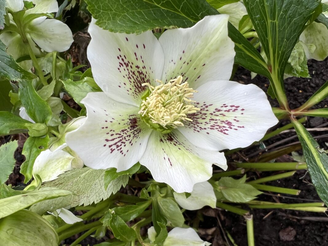 January means early winter flowers too. A speckled white hellebore, in full hanging flower, is ignoring the buffeting of our wind and rain. Last week, we saw the first snowdrops are starting to emerge and flower. As an experiment this year, I planted two kinds of paper white daffodils in various pots in the greenhouse in early December. They are all up, and I took one pot with the tallest plants into the kitchen. They are now in fragrant flower. We plan to keep switching out the pots, which should bring green and heady flowering daffodils into the house for the next couple of months.