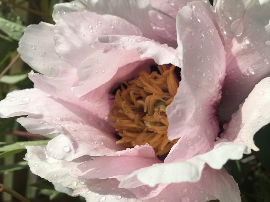 After an annual prune, plus digging in better soil, it is looking dense and green and beautiful now. And, it is full of song from resident blue tits, robin and blackbird. My second favourite blossom is a tree peony. It is one of the precious plants we potted up and moved with us to Rye. Its flowers are tissue-thin. Huge. Pink and purple and white. It feels like it only flowers for a few special days. My usual rule in our garden is “bee friendly and flowers must last at least four weeks.” But the tree peony is worth breaking all my rules.