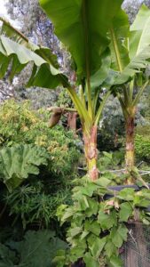 And so the first banana in my garden was a small Ensete Ventricosum Maurelii, bought from the Eden Project, which soon grew to an impressive 2m tall. I grow many different varieties in my garden now, including a small clump of Musa Basjoo – a hardy plant from Japan. I have been growing these for twenty years.