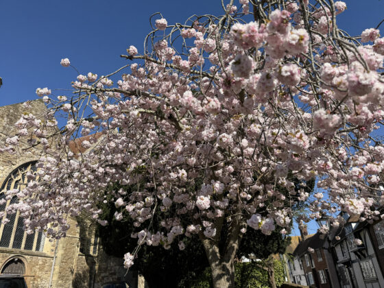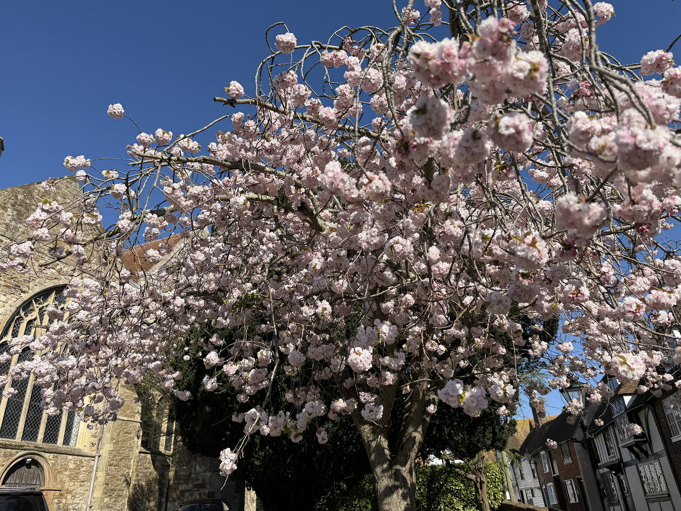 The town of Rye was bustling over the Easter weekend and many tourists commented on the spring-like feel and loved the blossom on the trees. A favourable winter followed by a calm sunlit spring has gifted Rye with an especially generous blossom this year especially in the churchyard at St Mary’s.