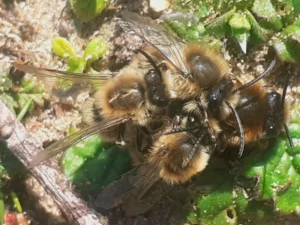 The Castle Water colony of rare Early Colletes Bee was extremely active on 19th. Emerging females were immediately pounced on by hoards of super-keen males, forming excited ‘mating balls’.