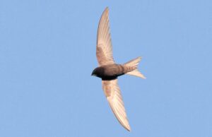 They are the fastest of all birds and built wholly for a uniquely airborne existence. They only land to have young in a nest, and then perhaps begrudgingly. In poor weather adults will leave their young and fly, if need be, hundreds of miles in search of food. Most amazing of all, a fledged Swift will not touch terra firma for two, maybe three years – it feeds and sleeps and lives all of its extraordinary early life in the air.