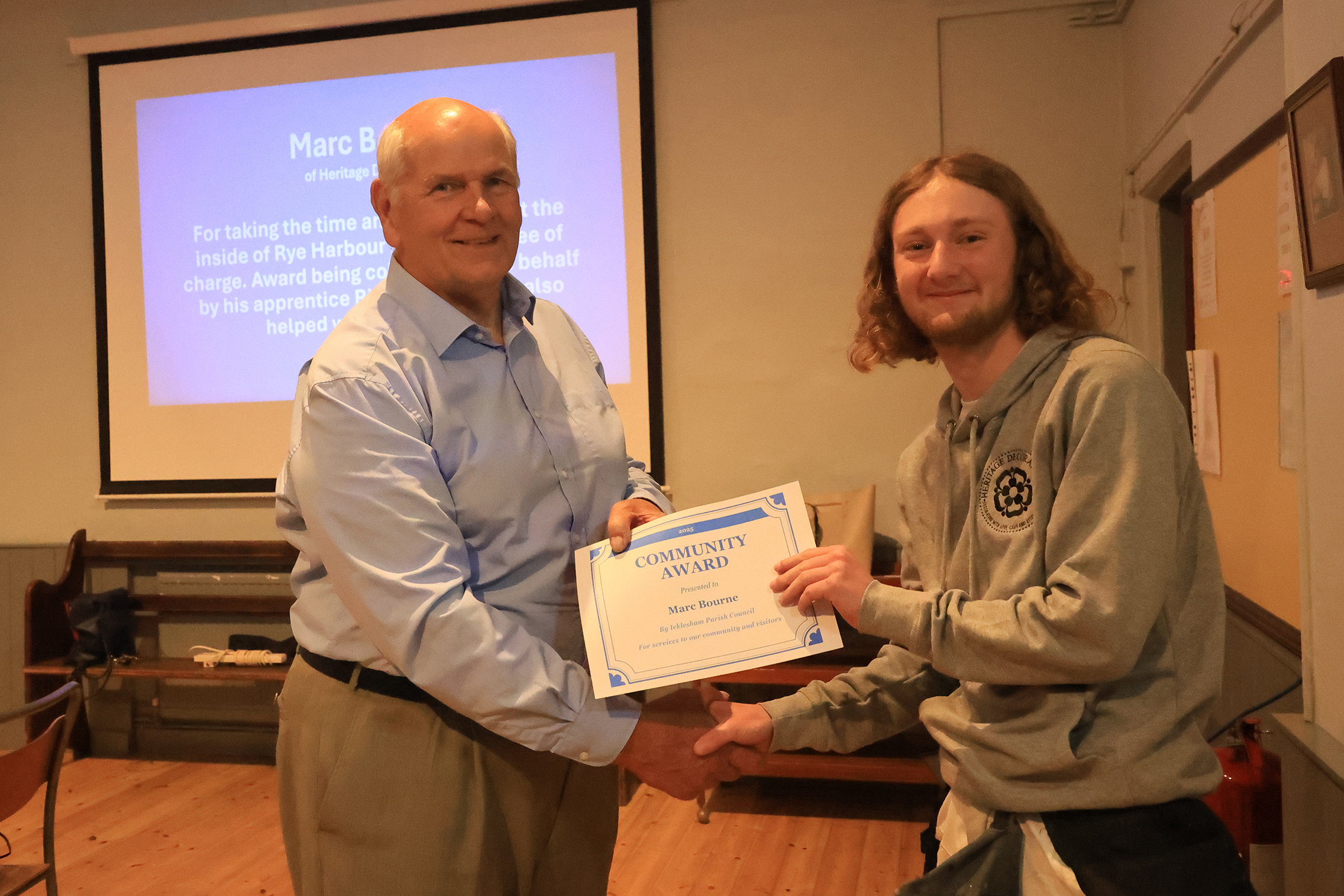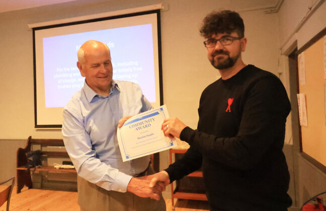 Community awards were handed to residents who have gone above and beyond for the local community and our visitors over the last year. Awards were given to John Mills, Marc Bourne, Ian Leroy-Lewis, Richard Tollett, Martin Sands, Mark and Jane Taylor, Stuart Baker, David Page, Danny Williams, Martin Bruce and myself.