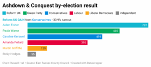 Aidan Fisher said it was a close run election. “Reform UK is a very new party and we were up against the Greens who have a very strong electoral record locally. Out canvassing, people were very interested in us but totally disillusioned by the main parties. They were keen to engage with us.”