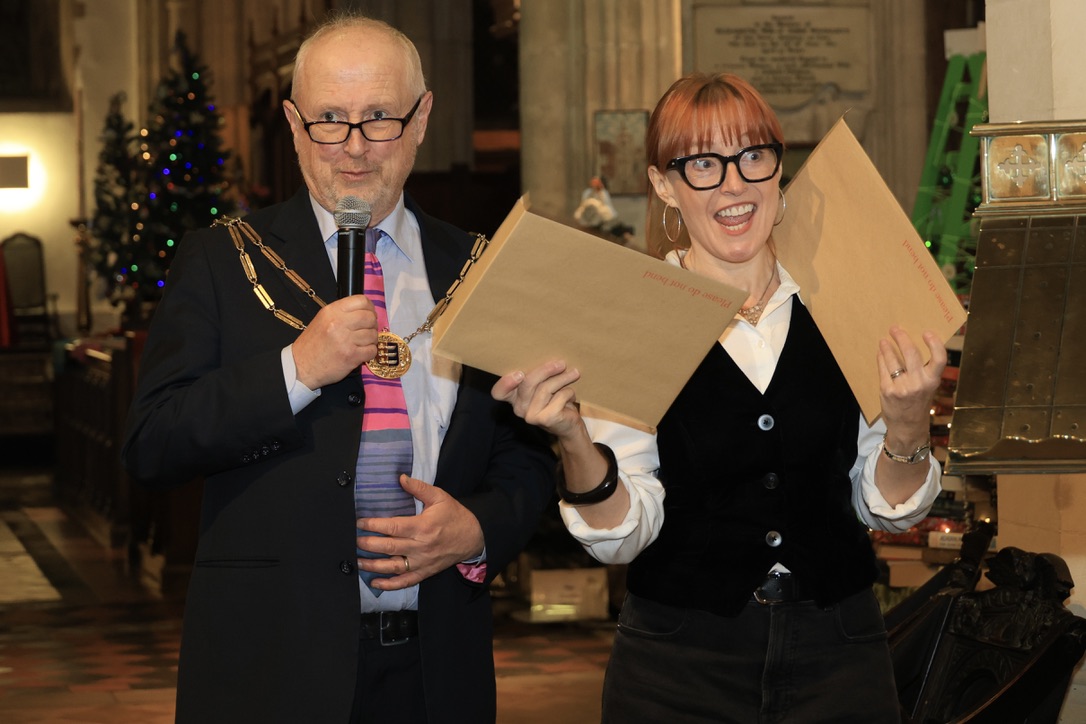 The winning envelopes Cllr Andy Stuart Mayor of Rye and Sarah Broadbent