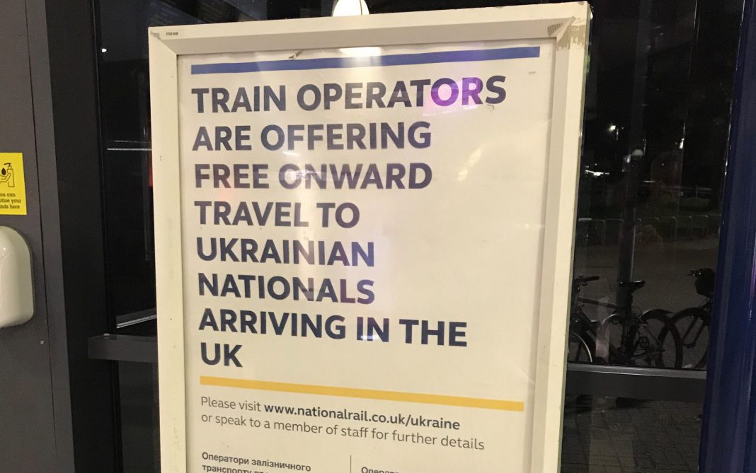 | ENG | To help Ukrainian nationals travelling to the United Kingdom, most public transport operators, including National Rail, are offering free onward travel to get you to a safe place. |