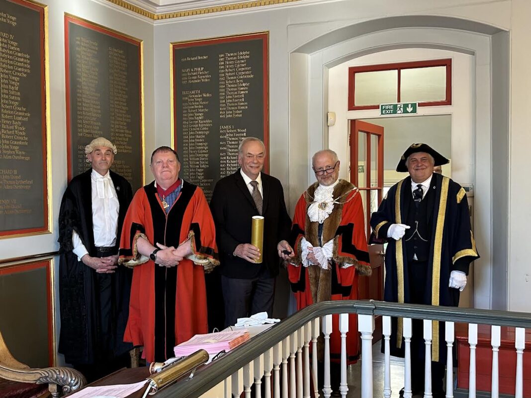 Friends and family joined Barry in the council chamber thanks to Paddy Coulman. “It was a complete surprise when my son and daughter turned up. We celebrated afterwards at the George.”