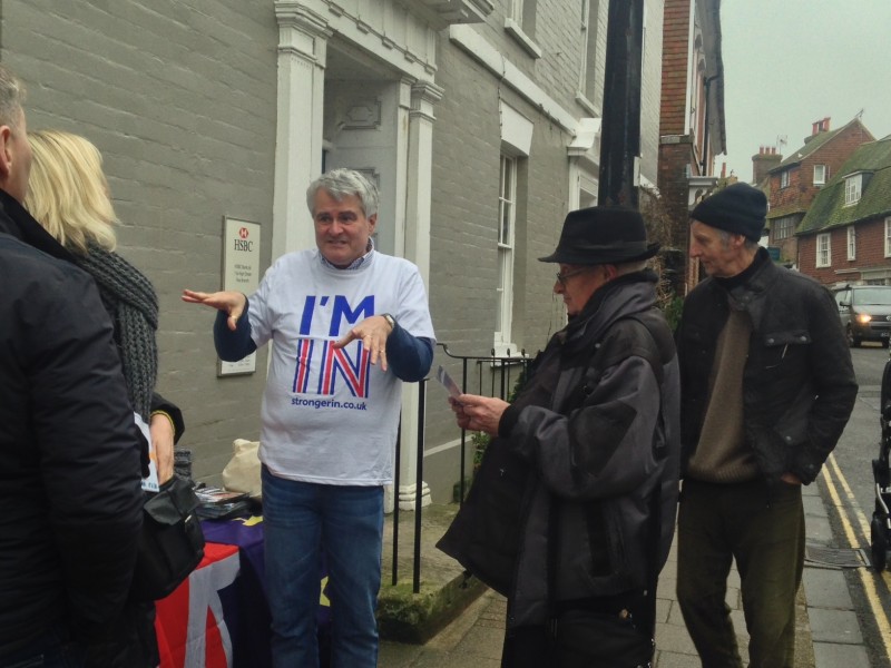 But the first Easter egg has already been spotted on shop shelves and the first daffodils have flowered so the first Euro-campaigner (pictured above with the Rye News Editor, in black trilby, paying rapt attention) was bound to follow soon after – and there may be many, many, many more weeks of this.