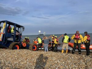 Whilst on the rescue, the teams were alerted to a 24-foot yacht suffering engine failure three miles off shore. Crews from RNLI Rye Harbour and PLIRB were quickly on the scene and conducted a welfare check on the two crew. The yacht was then towed to Rye Harbour for safe mooring.