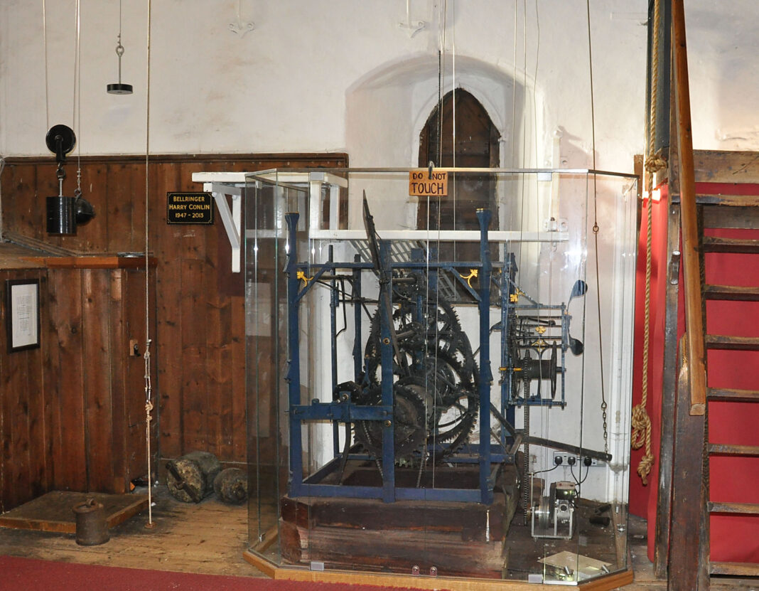 Alex attended again; while he made adjustments (not to be tried by the faint-hearted, as you could get caught in the mechanism) our verger Ben Mason stood outside and relayed the position of the hands. Left hand down a bit… Thank goodness for mobile phones!