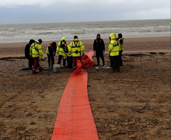 The Maritime Coastguard Agency (MCGA) and local authorities have responsibility for making contingency plans for dealing with oil pollution incidents around the UK coastline and on two blustery and cold days, November 13-14, some 40 local authority staff and contractors from all over East Sussex were put though their paces in a series of briefings and practical exercises on Camber beach.