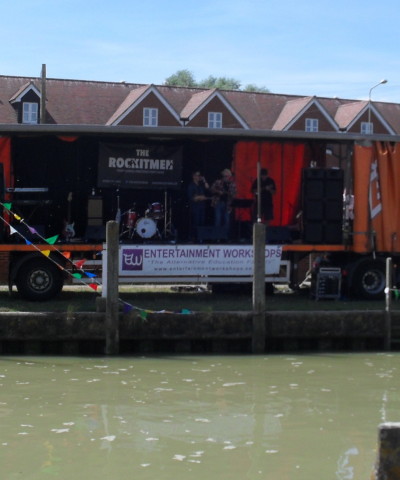 As the tide rose, so did the numbers of shore visitors. Space on the Quay became at a premium and it was not surprising. At one end, thankfully on the opposite side of the river, the Rockitmen performed as only they can and entertained the crowds as they queued in the beer tent and waited to sample some of Rye Butcher’s superb sausages and burgers.