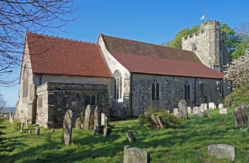 St George’s Church, Brede is a prominent landmark for motorists on the A28 as they drive up the steep hill after crossing Brede Bridge. The parish church dates originally from the twelfth century when it was built for the monks of Fecamp Abbey in Normandy, but it has been much altered since then. St George’s attracts many visitors, notably at the time of its popular annual Flower Festival, held during the late August Bank Holiday weekend.