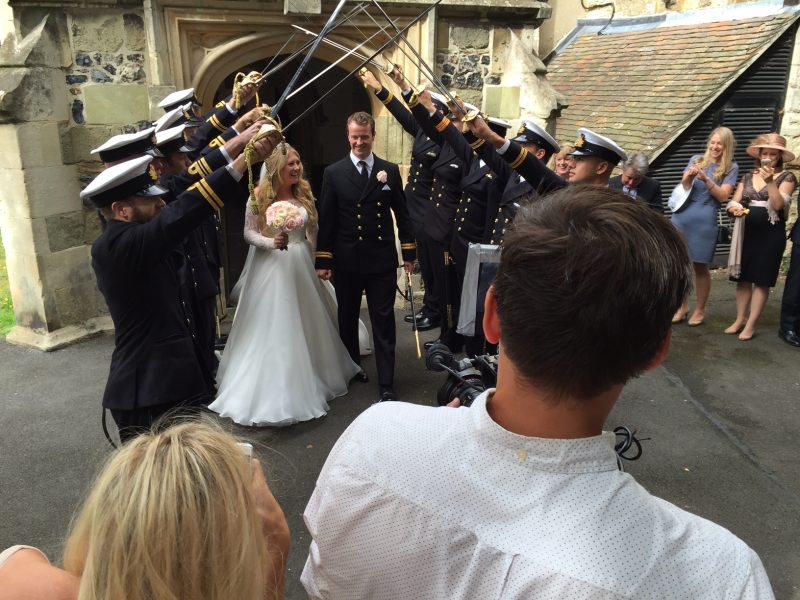 As flagged in Rye News last week, St Mary’s church hosted a wedding with a professional touch on Saturday September 3, writes Seana Lanigan. Kendra Leaver, Retail Editor and Events Director at the renowned Conde Nast Brides magazine married Joshua Rylah, Naval Liaison officer to London. Many spectators gathered in the churchyard in order to watch the guard of honour, provided by Joshua’s colleagues.