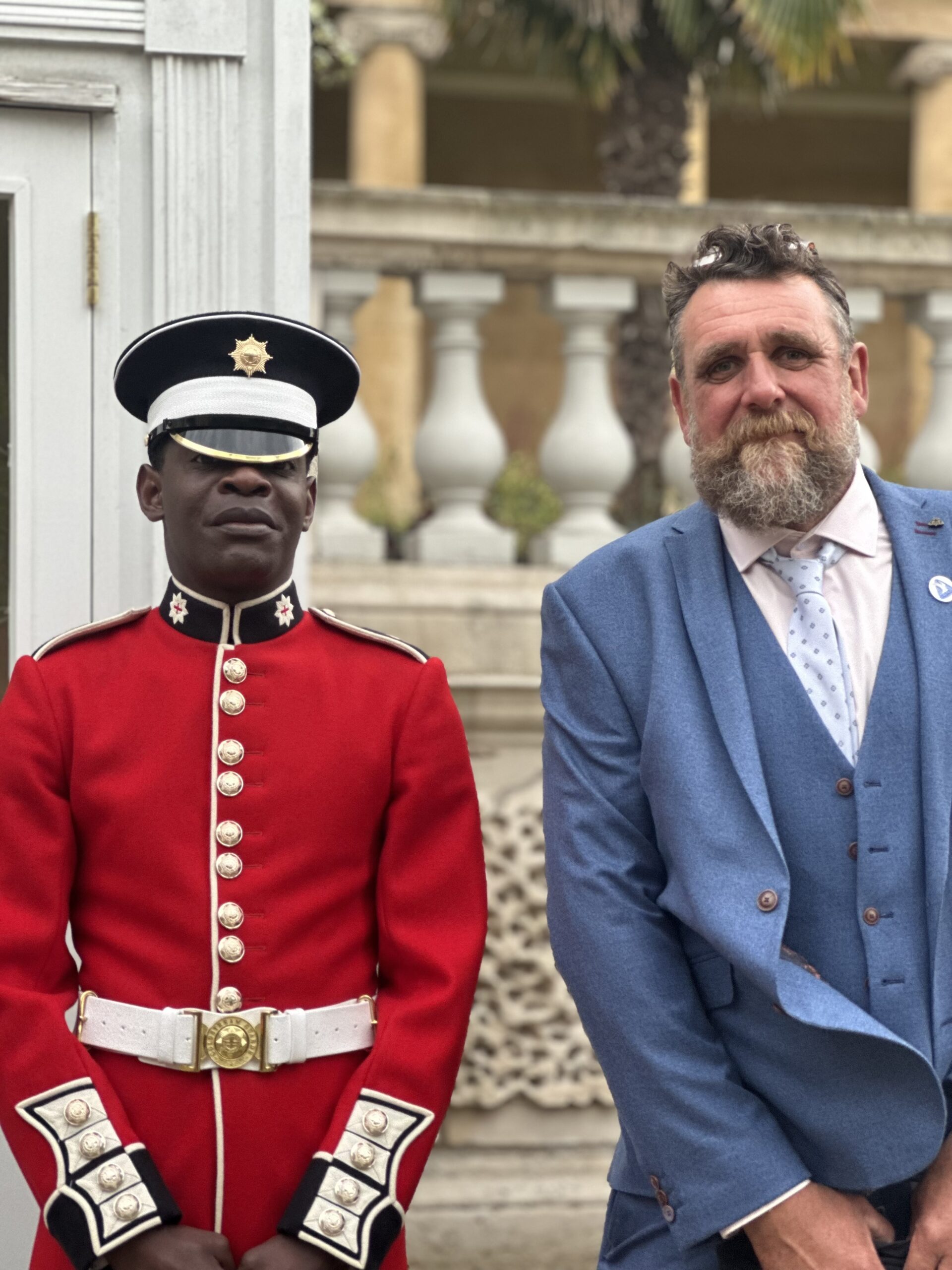 James Tomlinson, our wonderful bird artist and wearer of many hats and master of many skills, also had the opportunity to go to Buckingham Palace. His day did not start off in a calm, relaxed, laid-back sort of start.