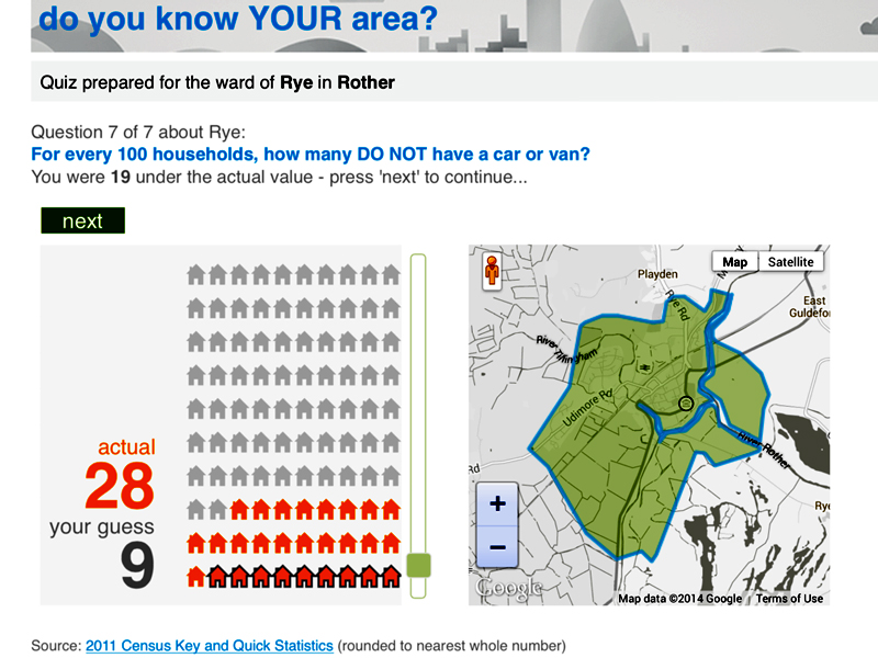 One of our reporters tried a quiz prepared by the Office for National Statistics (ONS) to test “how well do you know your area?” and was surprised at the result of the last question in particular. The question was: “For every 100 households how many do not have a car or van?”