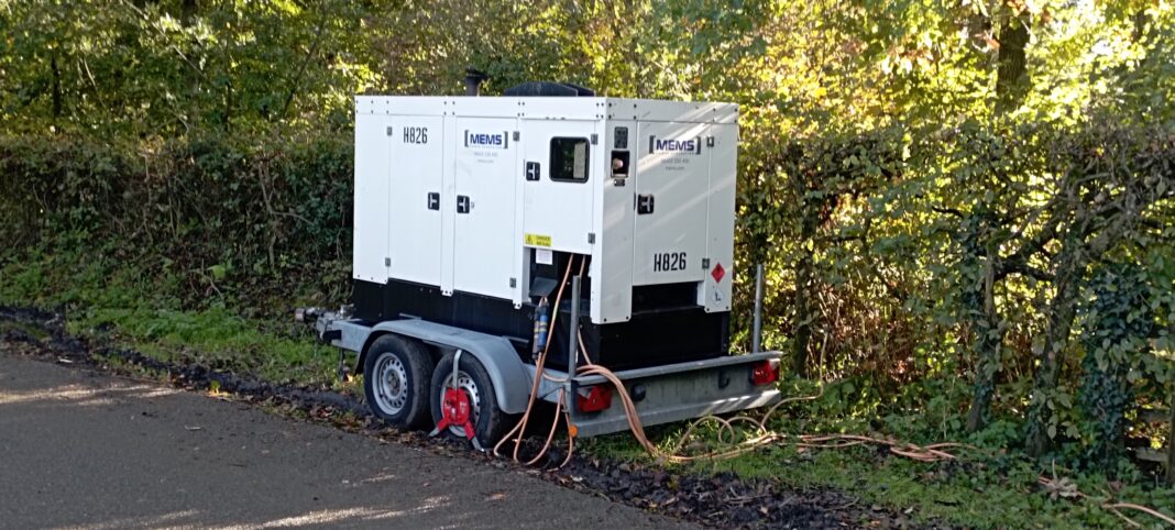 Whilst the works are being carried out the power supply is provided by huge generators placed on grass verges and highlighted by appropriate fencing and explanatory notices. They arrived, as did the poles, with the minimum of disruption, placed on the verges awaiting erection with very little inconvenience to residents and passing motorists.