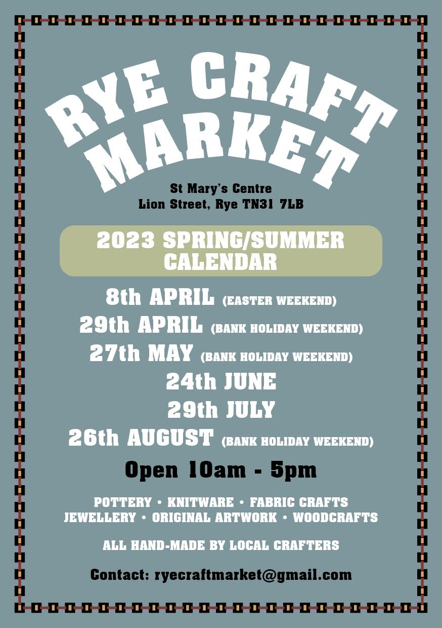 St Mary’s Centre, Lion Street (next to Rye Kino) is the venue for a new monthly craft market starting on Easter Saturday, April 8 from 10am to 5pm.