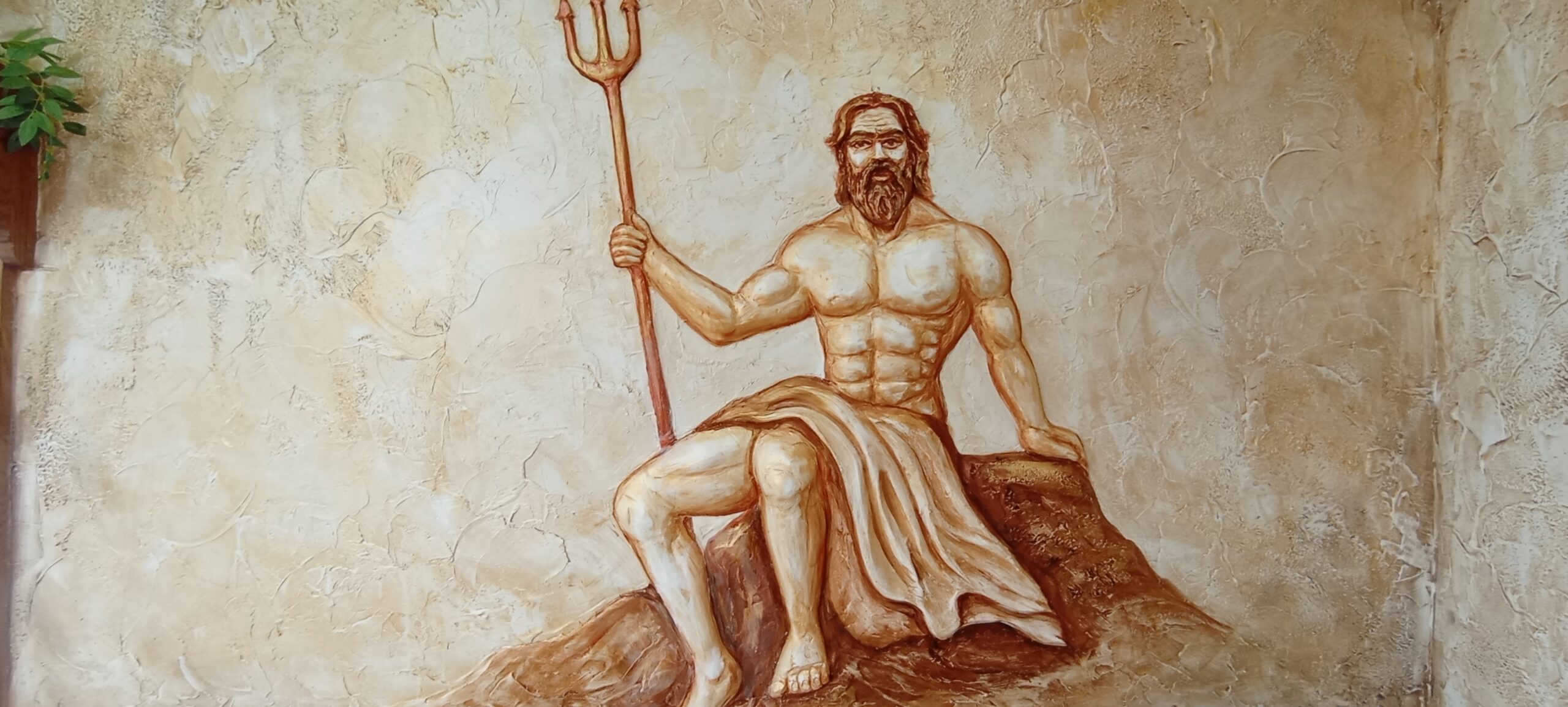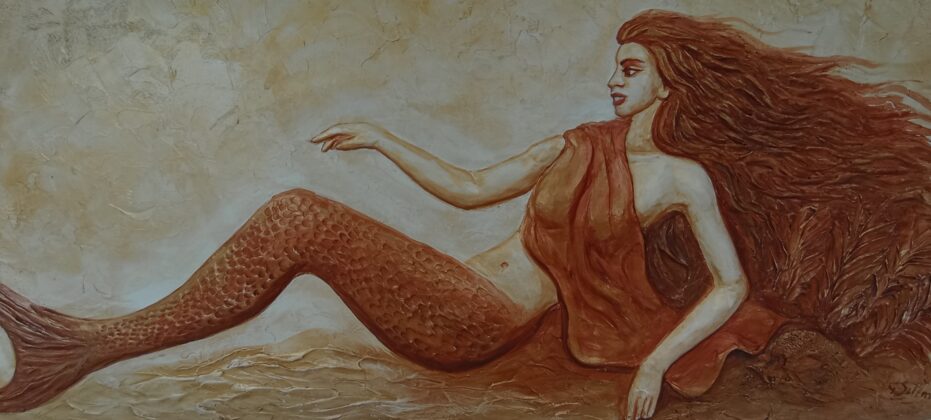 Two much larger friezes depict fishermen in their boats, hauling in their nets as the sun sets behind them then on another, a mythical mermaid adorns the foreground, lying on sand.