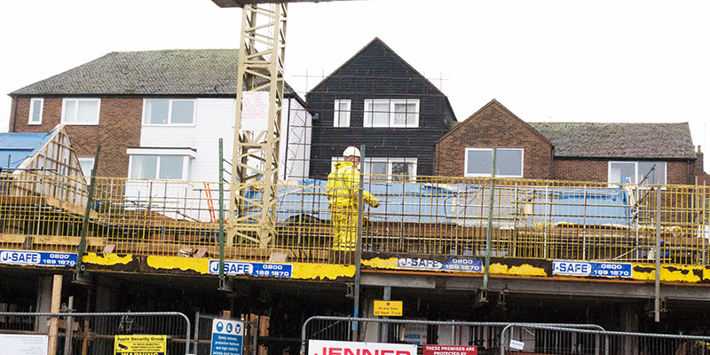 Mark Boles of Meridian Surveyors, Hastings, said that originally the boundary wall was to have been repaired and repointed on the Cinque Ports Street side. This hasn’t been done. Instead, in sections, the wall has been faced with a new half-brick wall, mechanically fixed to the original old wall. “This is therefore unauthorised works that did not receive any consent under the Party Wall Act . . . in addition, the gap between the wall and the new building [has been reduced], leaving a current gap of between 160-270mm.” This “will not allow access in the future for maintenance of the wall should this be required”.