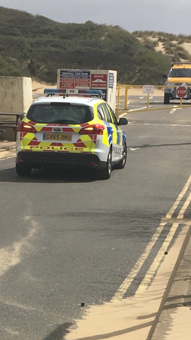 A police car at Camber at Easter