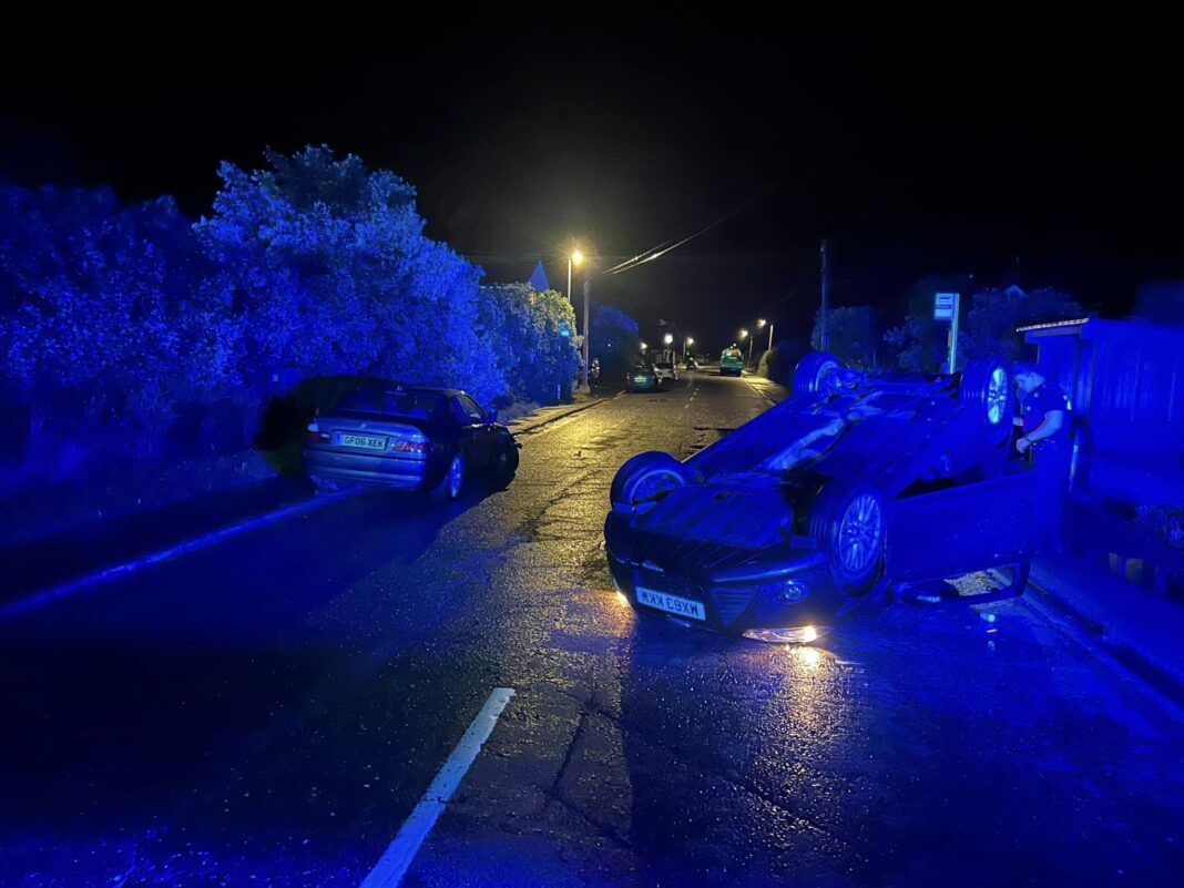 Investigations have begun after a collision in Camber which saw a car flipped on to its roof.