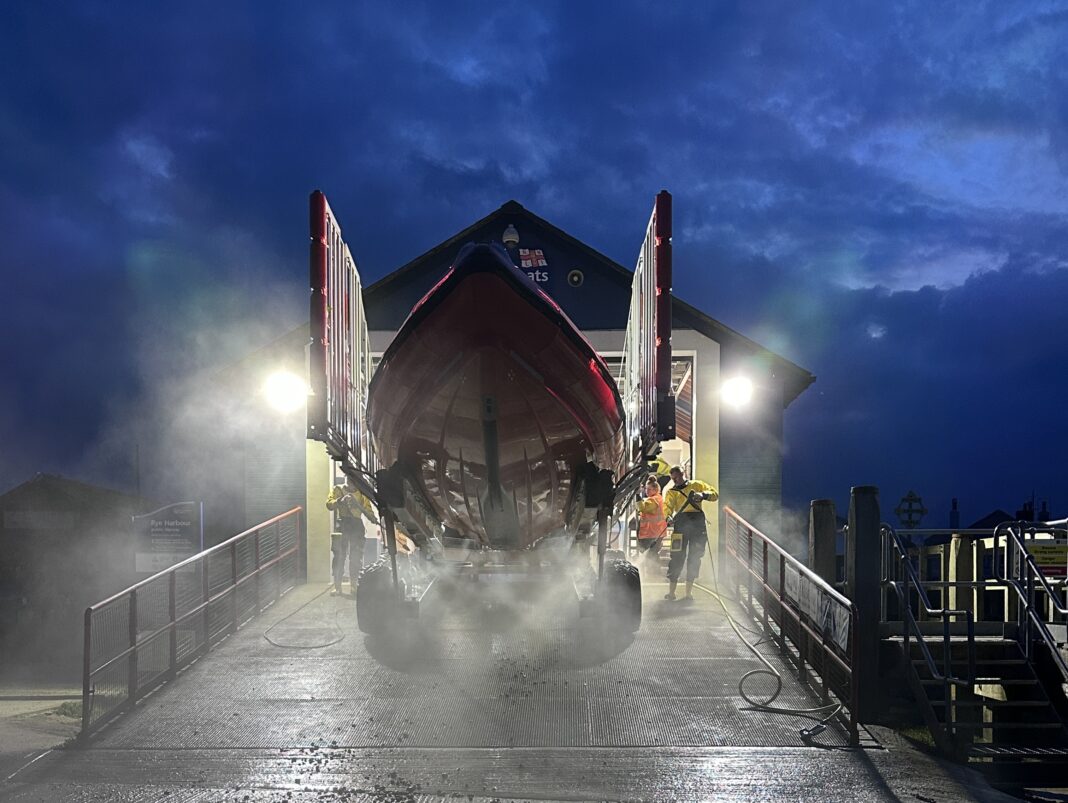 Rye Harbour was stood down and returned to the station for the boat to be washed and  prepared for service. Two members of the crew were just about to enjoy birthday celebrations at the local pub when the pagers went off. They assisted on the shore to ensure the boat was launched as quickly as possible.