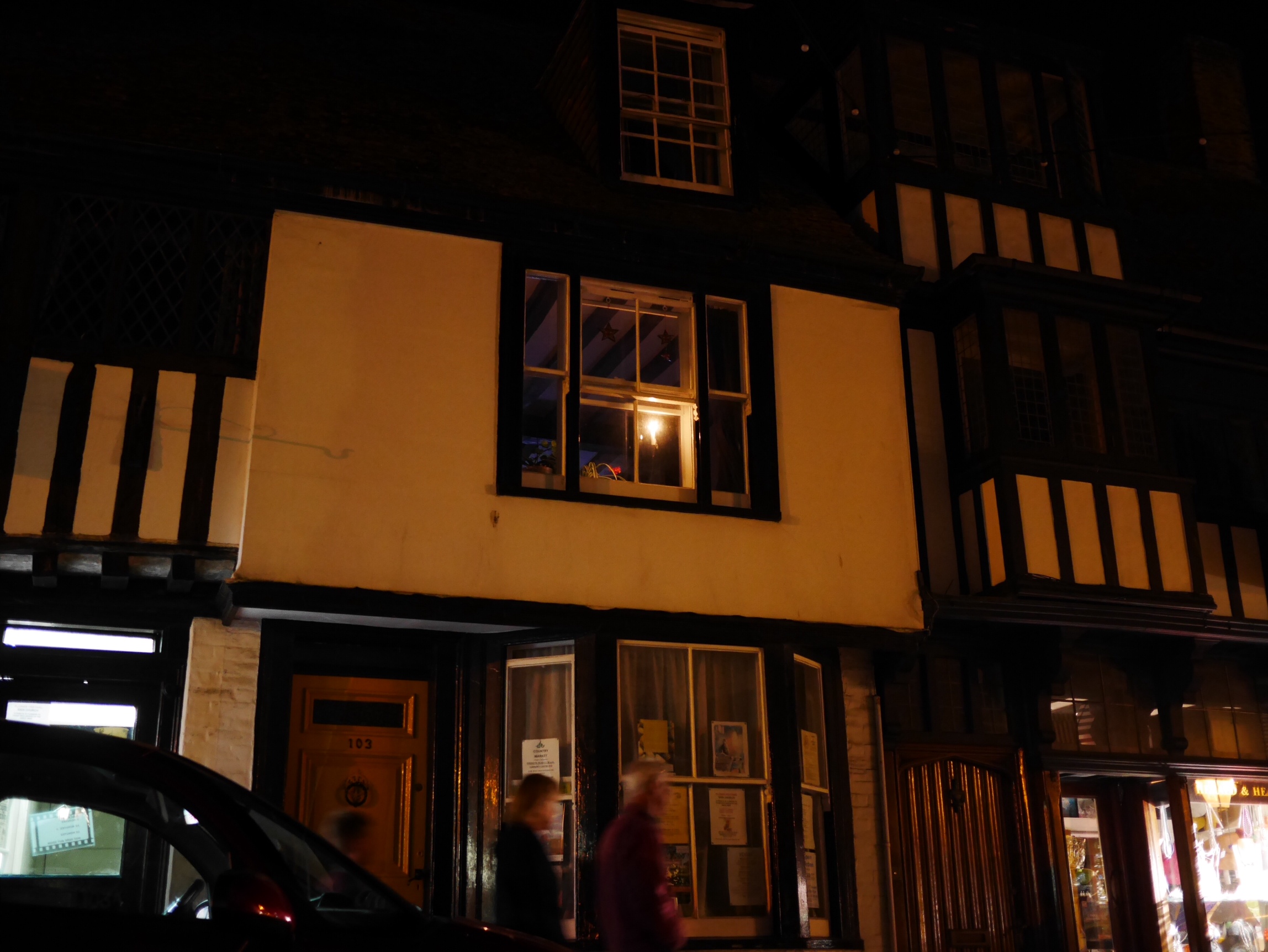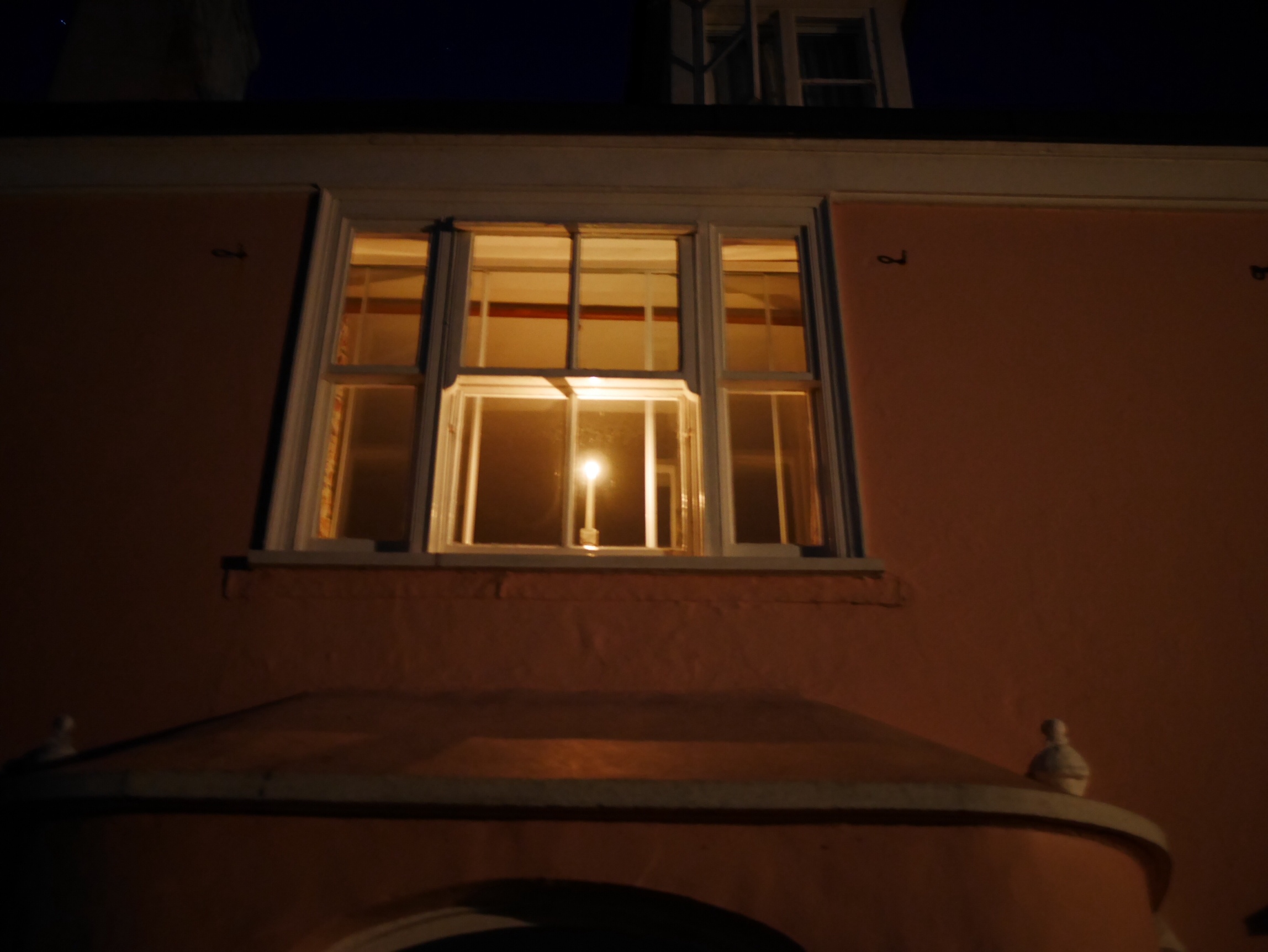 Above right: candles burn in the windows of Rye homes, one in Church Square, the other in the High Street