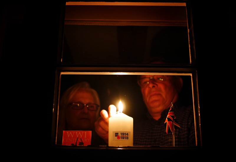 It was part of the national hour of reflection that began at 10pm, an hour of “Lights out”, an echo of the words in 1914 of Sir Edward Grey, Britain’s Foreign Secretary, who said on the eve of the nation officially entering the war: “The lamps are going out all over Europe, we shall not see them lit again in our lifetime.”